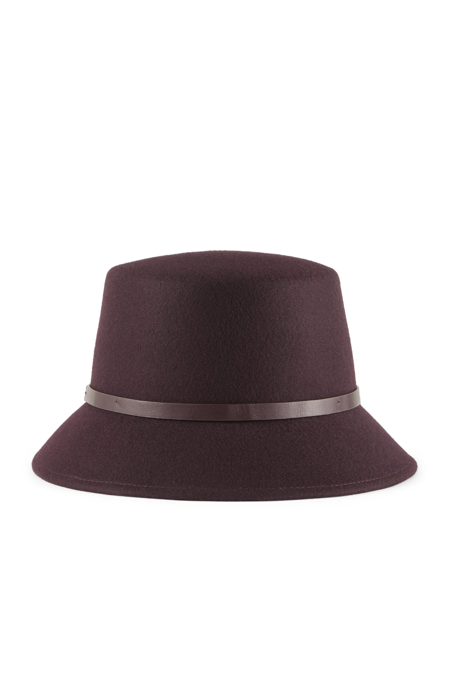 Our beautiful, cold-weather version of our bestselling summer bucket hat, the burgundy Wilma returns this winter in a gorgeously warm wool felt. With its flatteringly turned-down, short brim and structured flat crown, the Wilma’s profile remains sophisticated, modern, and is now adorned with a smooth leather trim for the ultimate quality finish.